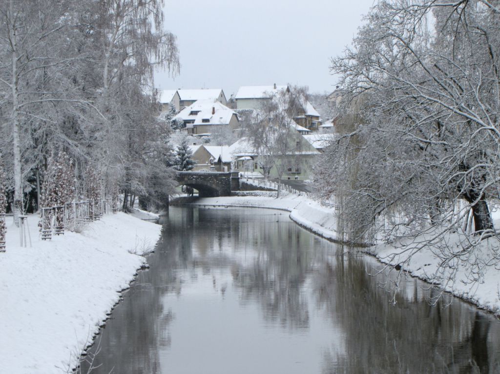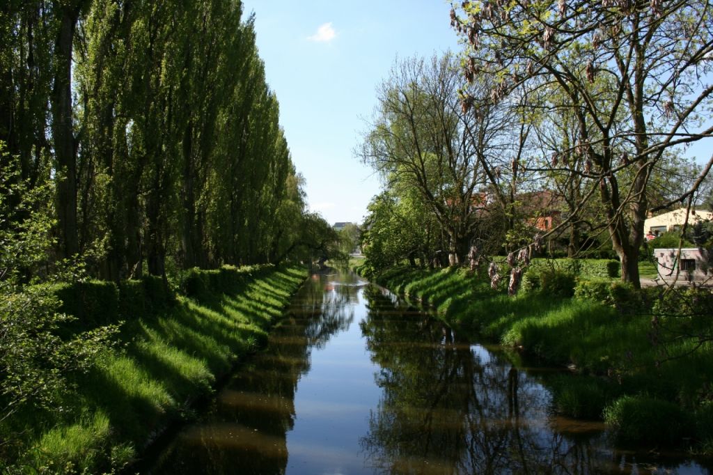 Řeka Včava u stadionu