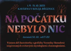 Výstava děl ilustrátorky a grafičky Veroniky Homolové inspirovaných světovými mytologiemi a kosmogoniemi. Výstavu můžete navštívit od 1. září do 31. října v Kavárně v Koleji. Dernisáž se koná 30. října od 17 hodin.