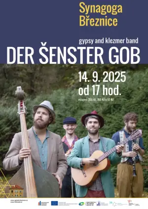 Der Šenster Gob je akustická kapela hrající židovskou, cikánskou a balkánskou hudbu, cestujíc po celé Evropě v romantickém zeleném dřevěném karavanu. Vstupenky: www.zamek-breznice.cz/cs/akce/121070-koncert-synagoga-breznice-der-senster-gob